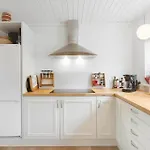 Bl367-Pandrup-Rodhus-Kirkevej-5 Villa has a kitchenette, provided with an electric kettle, a fridge, and an oven.